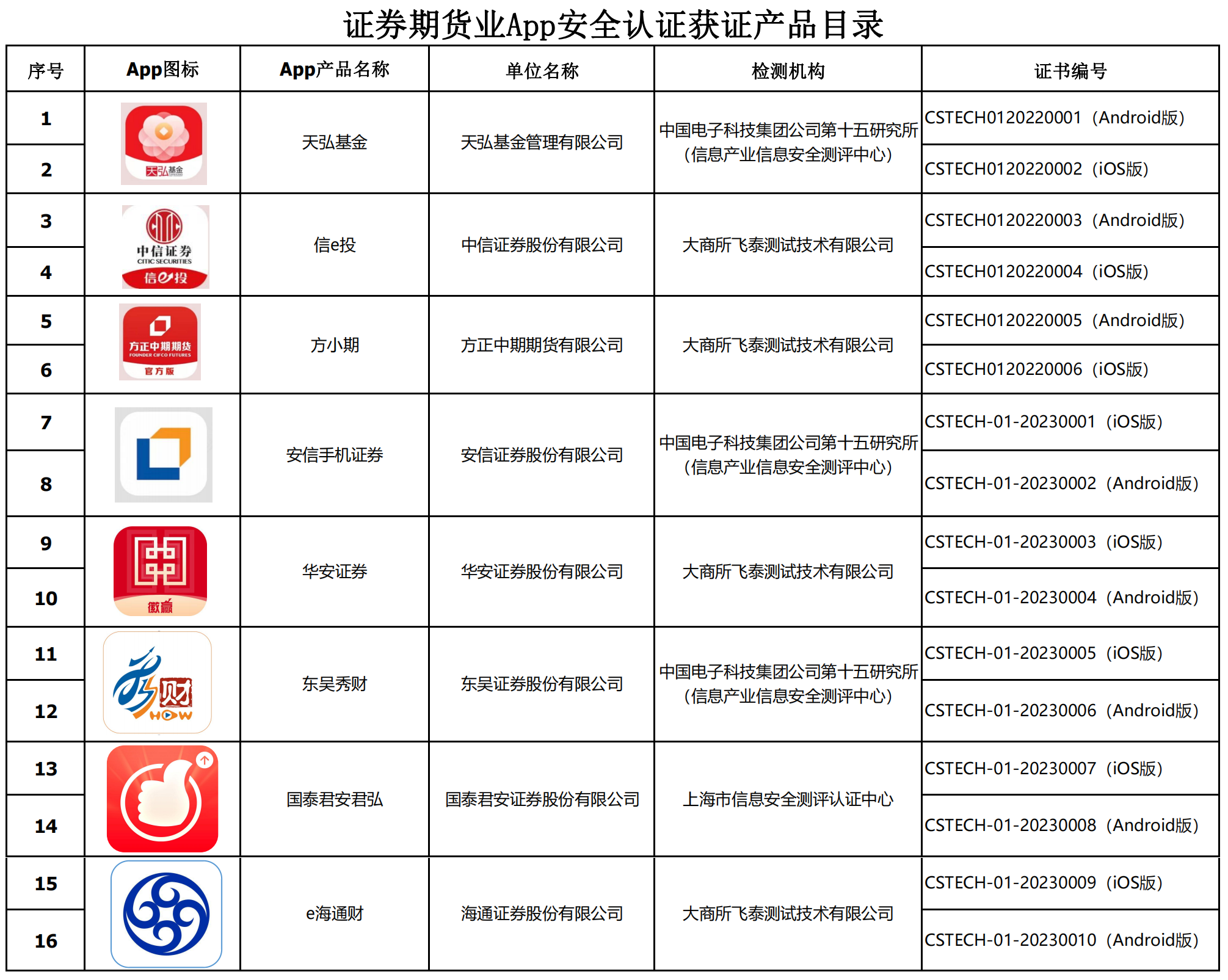 经过审核,“e海通财”App符合行业标准《证券期货业移动互联网应用程序安全规范》(JR/T 0192—2020)及《证券期货业移动互联网应用程序安全检测规范》(JR/T 0240—2021)要求,通过证券期货业App安全认证,获得认证证书。