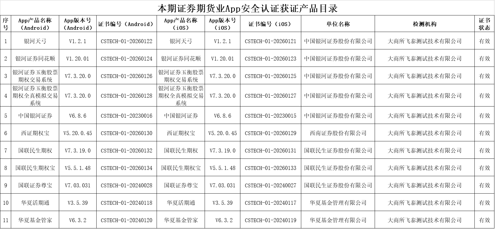 本期通过证券期货业App安全认证名单具体如下: